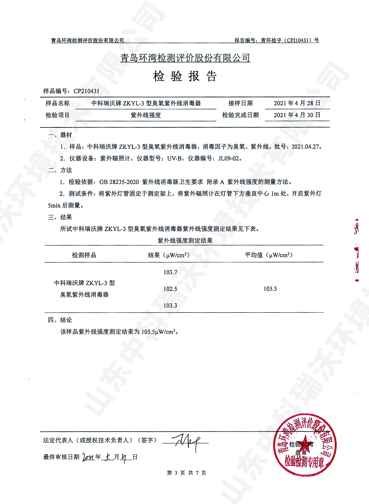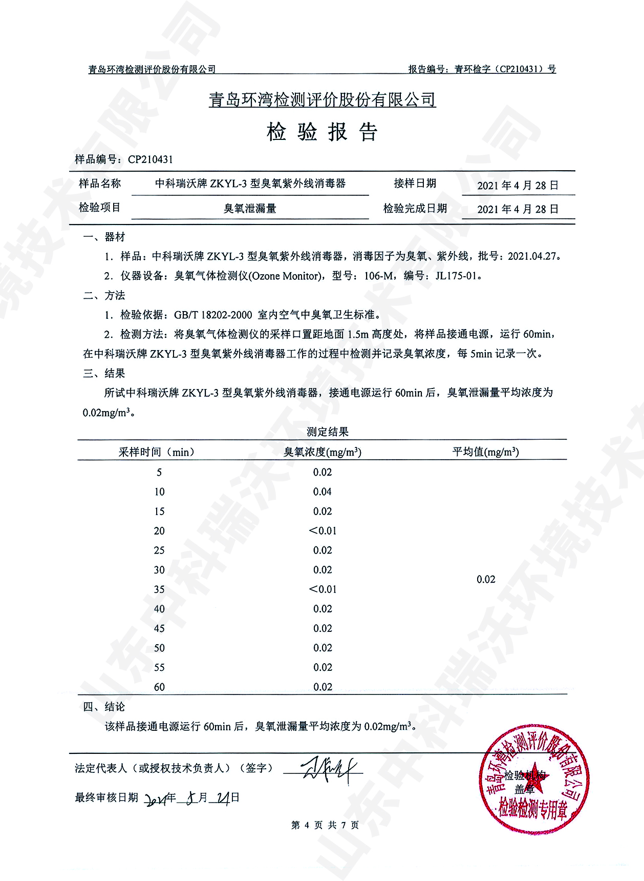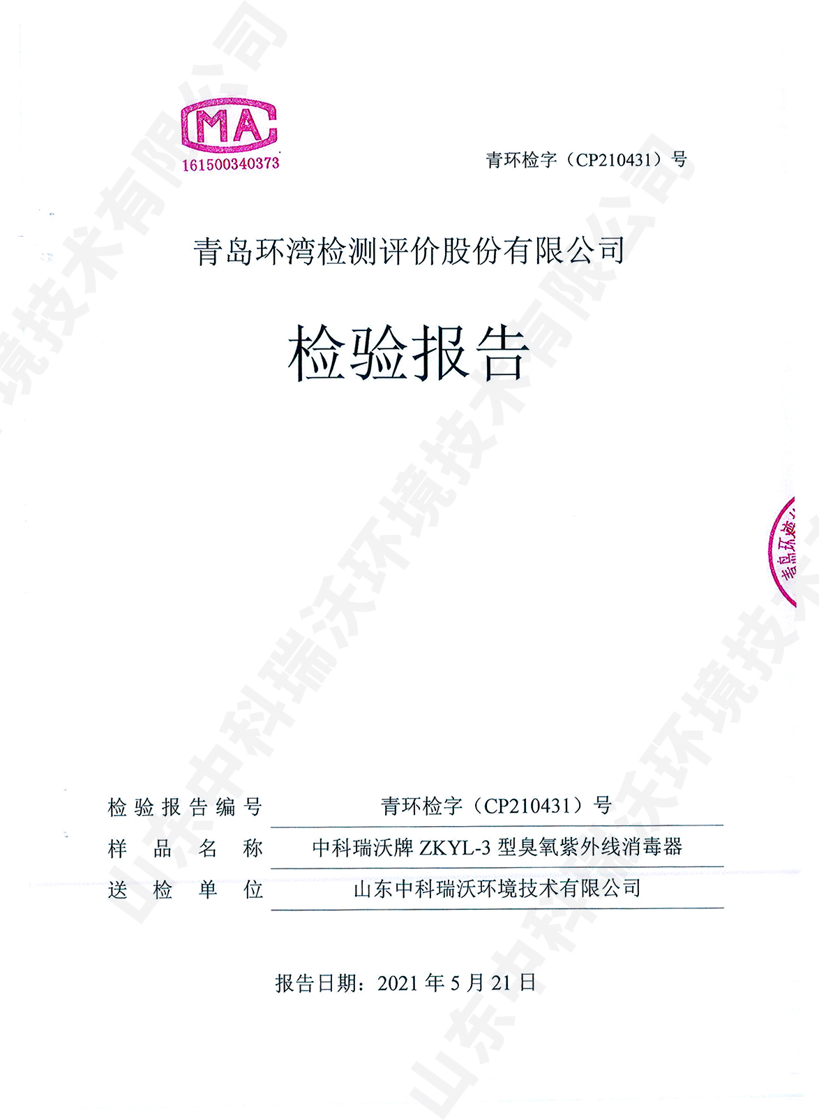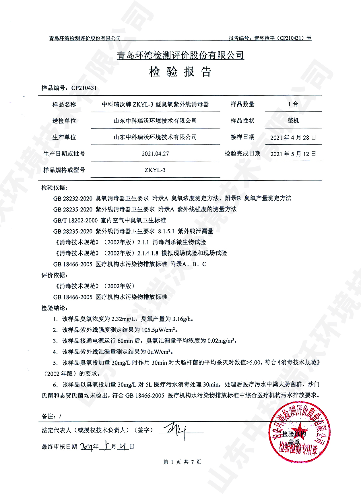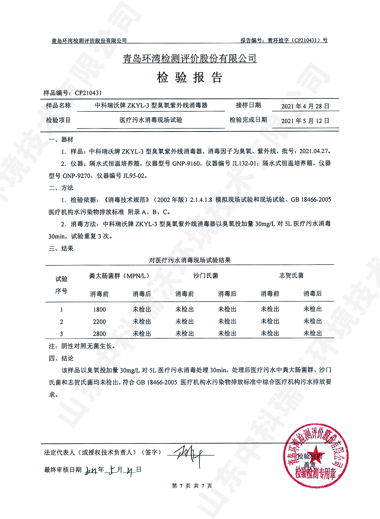 醫療污水處理設備檢測報告~臭氧消毒